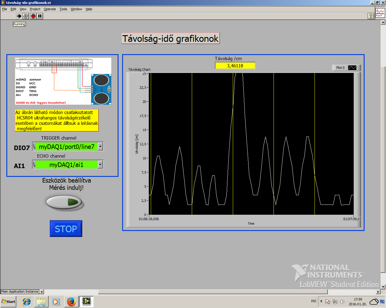 beállítva, mérés