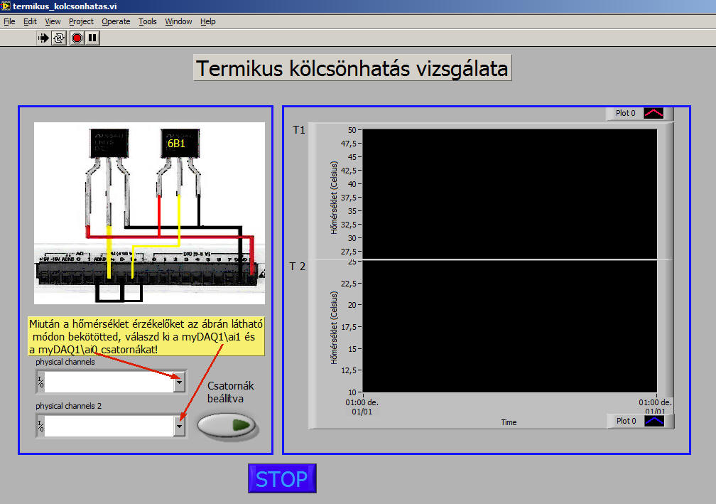 A tanulók sok iskolában elvégzik -vagy a tanár által bemutatva megnézik - azt a kísérletet, hogy egy tál hideg vízbe egy pohár meleg vizet tesznek, és adott időnként megnézik a vizek hőmérsékleteit. Addig figyelik, amíg az egyensúly be nem áll. Ennek a kísérletnek egy számítógéppel segített változata látható itt.